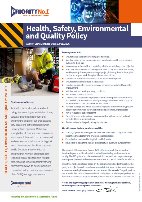 You can download our full Powersystems Safety, Environment and Quality (SHEQ) Statement (PDF) above.
