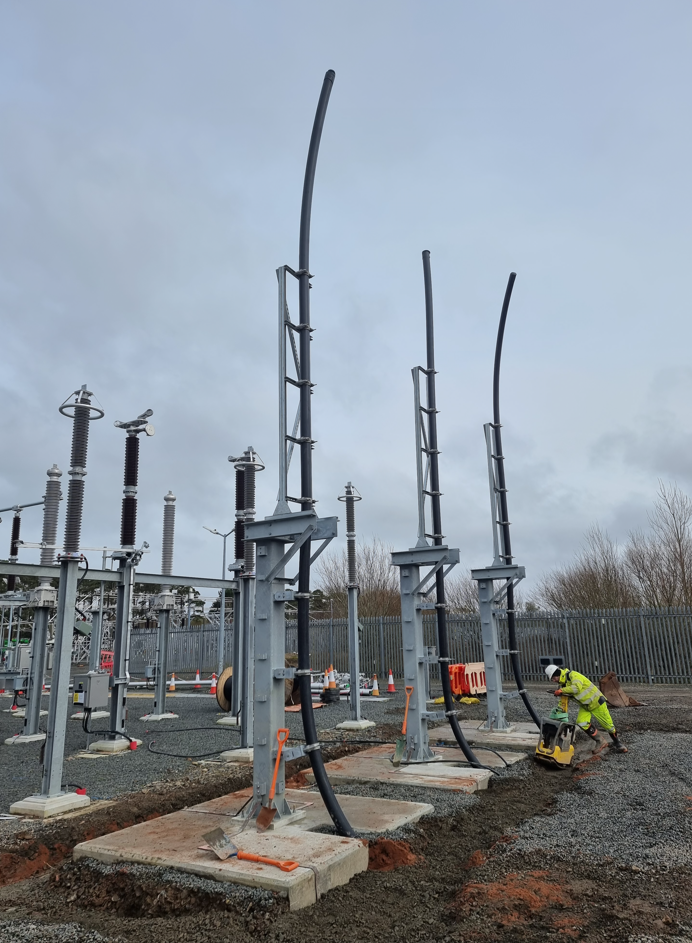 - 275 kV cable installation within the Scottish Power compound, currently being prepared for cable sealing end installation