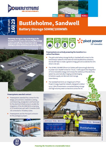 | Powersystems Fact | Powersystems successfully energised the Bustleholme 49.9 MW BESS in 2023, delivering the infrastructure required to integrate 76 Wärtsilä battery cubes and 19 inverters. |